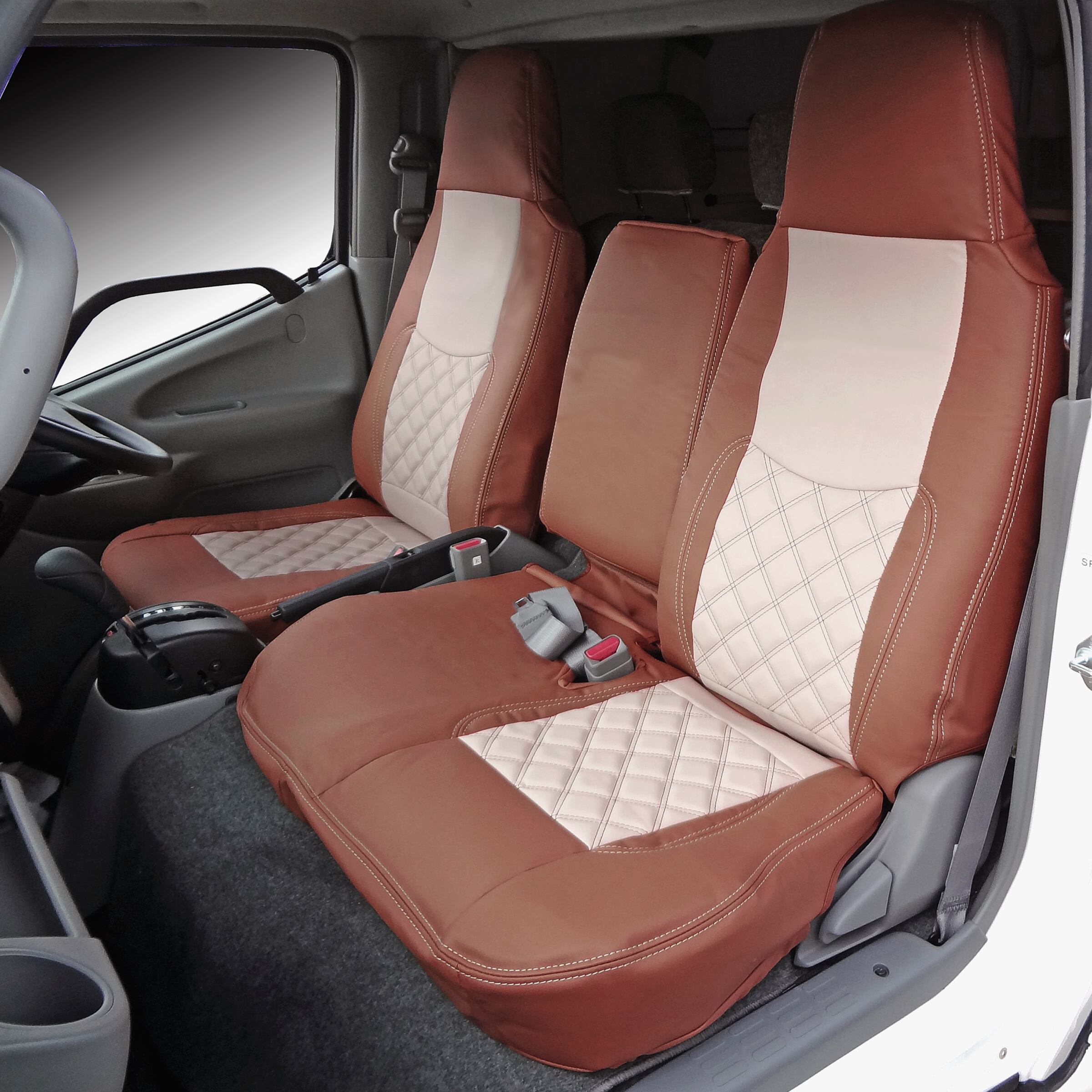 シートカバー デュトロ ダイナ トヨエース H11.5~R1.4 標準 ダブルキャブ ダイヤカット ベージュ x ブラウン 艶無し PVCレザー 運転席 助手席 左右