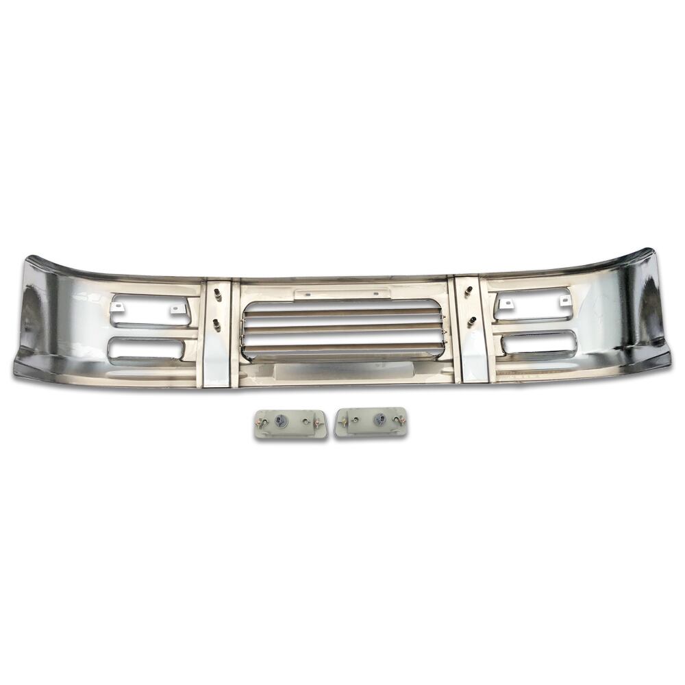 ふそう ブルーテック ジェネレーション キャンター 標準キャブ メッキ フロント バンパー W1685mm H340mm フォグランプ 取り付けステー 付き
