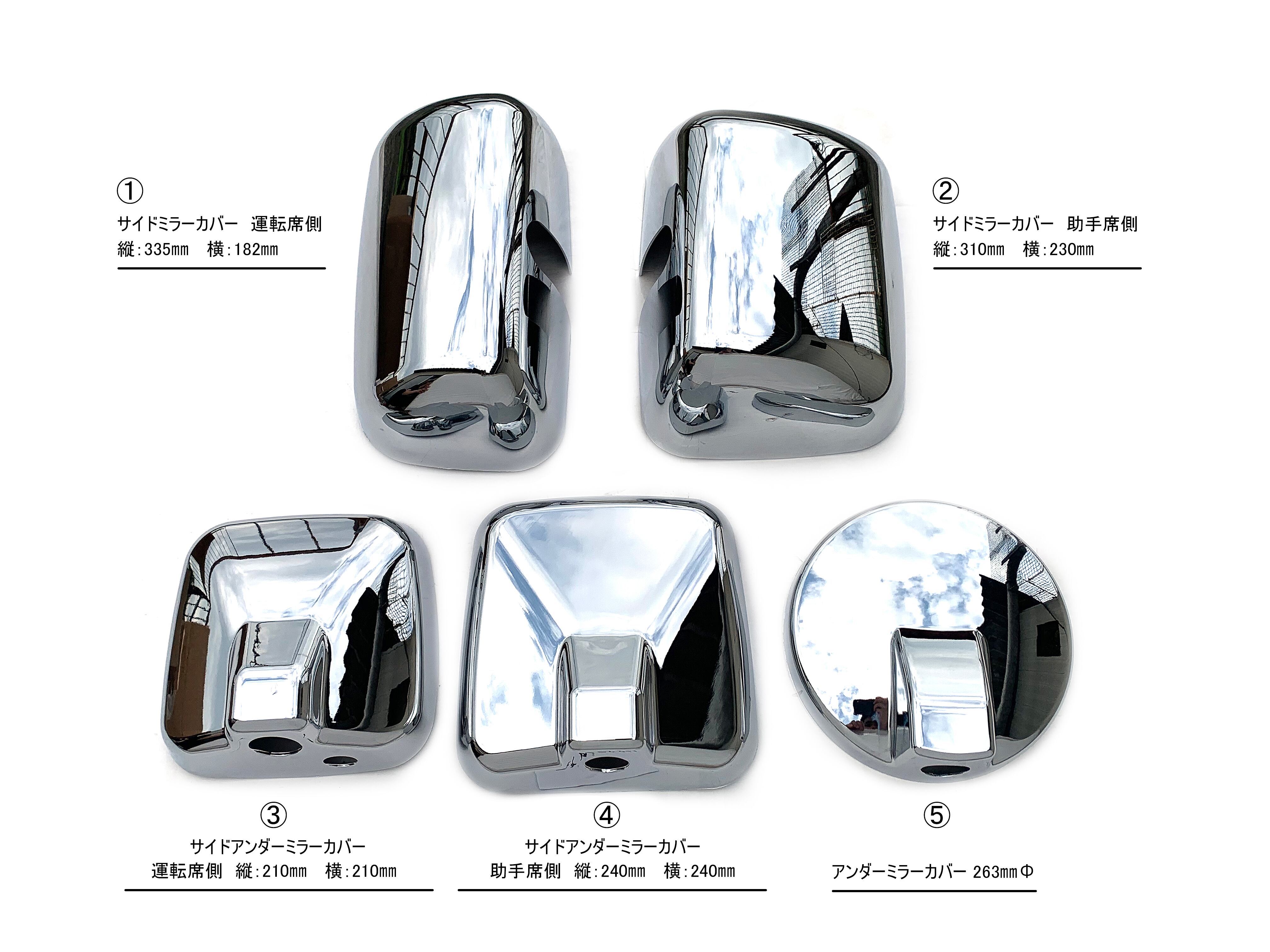 日野大型エアループプロフィア(H22.9〜H29.4) 17プロフィア(H29.5~)大型車用 サイド ミラーカバー 5点セット アンダーミラー 263mm
