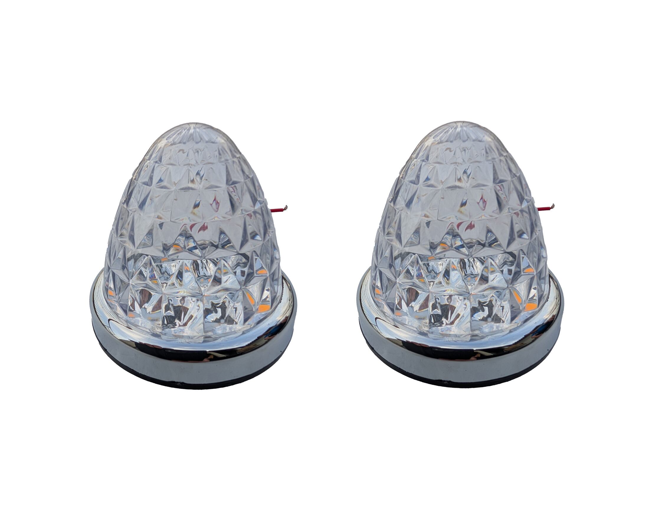 トラック用 LEDサイドマーカー ランプ ダウンライト12V24V 6面クリスタルカット 丸型メッキリング 路肩灯機能付 2個/セット グリーン