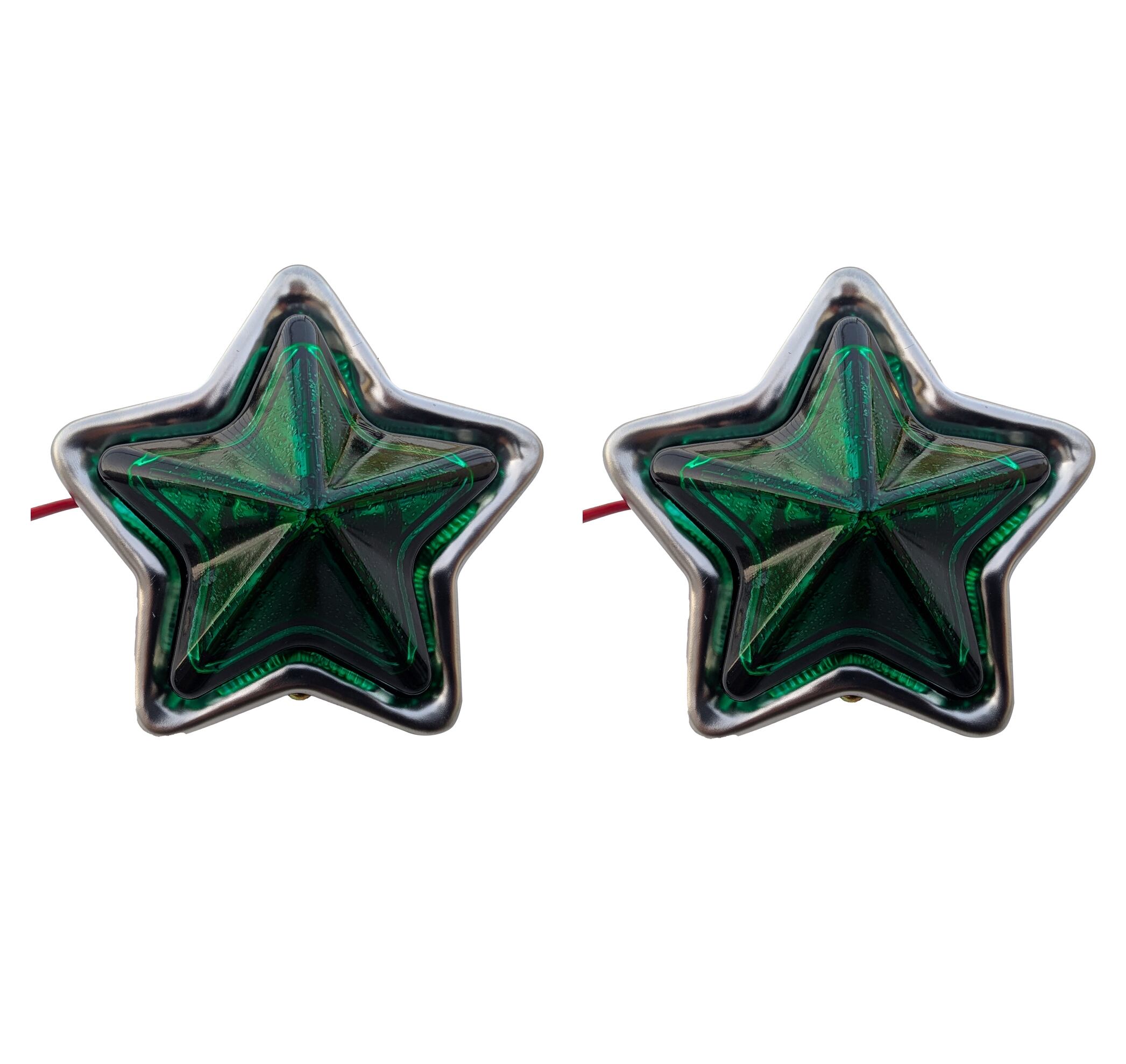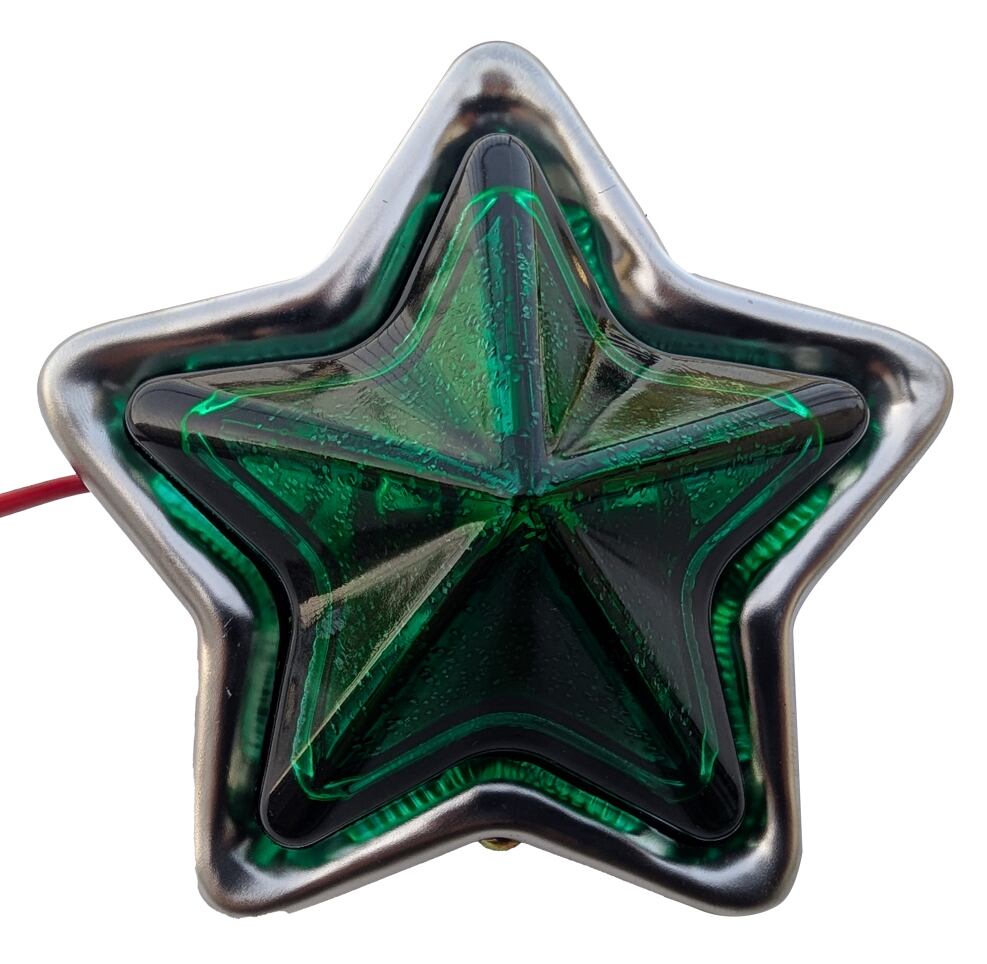 星型 汎用 レトロ ガラス LED マーカー グリーン 緑色 電装 電飾 装飾 直径約92mm 奥行約35mm スター マーカー 12V / 24V 兼用 2個セット