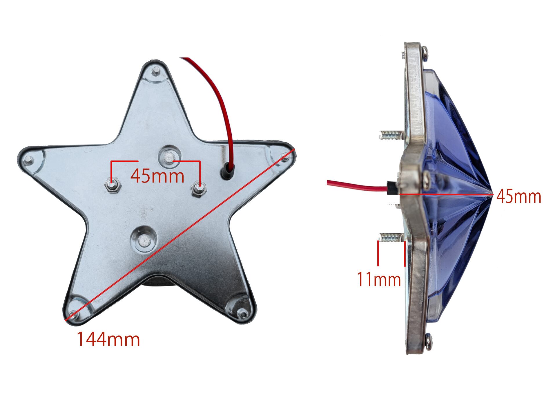 星型 汎用 レトロ ガラス LED マーカー レッド 赤色 電装 電飾 装飾 直径約144mm 奥行約45mm スター マーカー 12V / 24V 兼用 2個セット