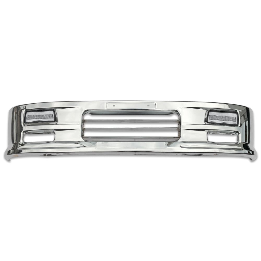 日産 アトラス F24 標準キャブ メッキ フロント バンパー W1685mm H340mm フォグランプ 取り付けステー 付き 12-24Vホワイト白LEDフォグランプ付