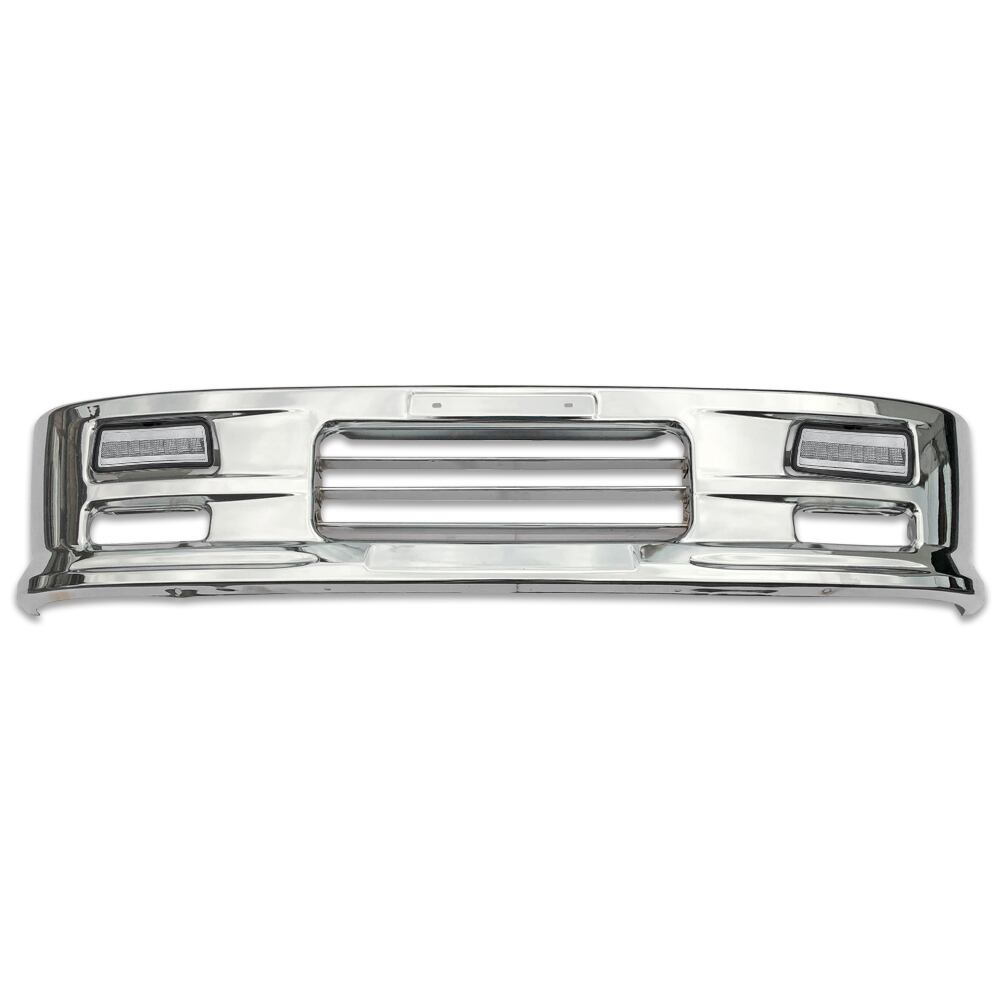 いすゞ 07 エルフ ハイキャブ ミドルキャブ メッキ フロント バンパー W1685mm H340mm フォグランプ 取り付けステー 付き 12-24Vホワイト白LEDフォグランプ付