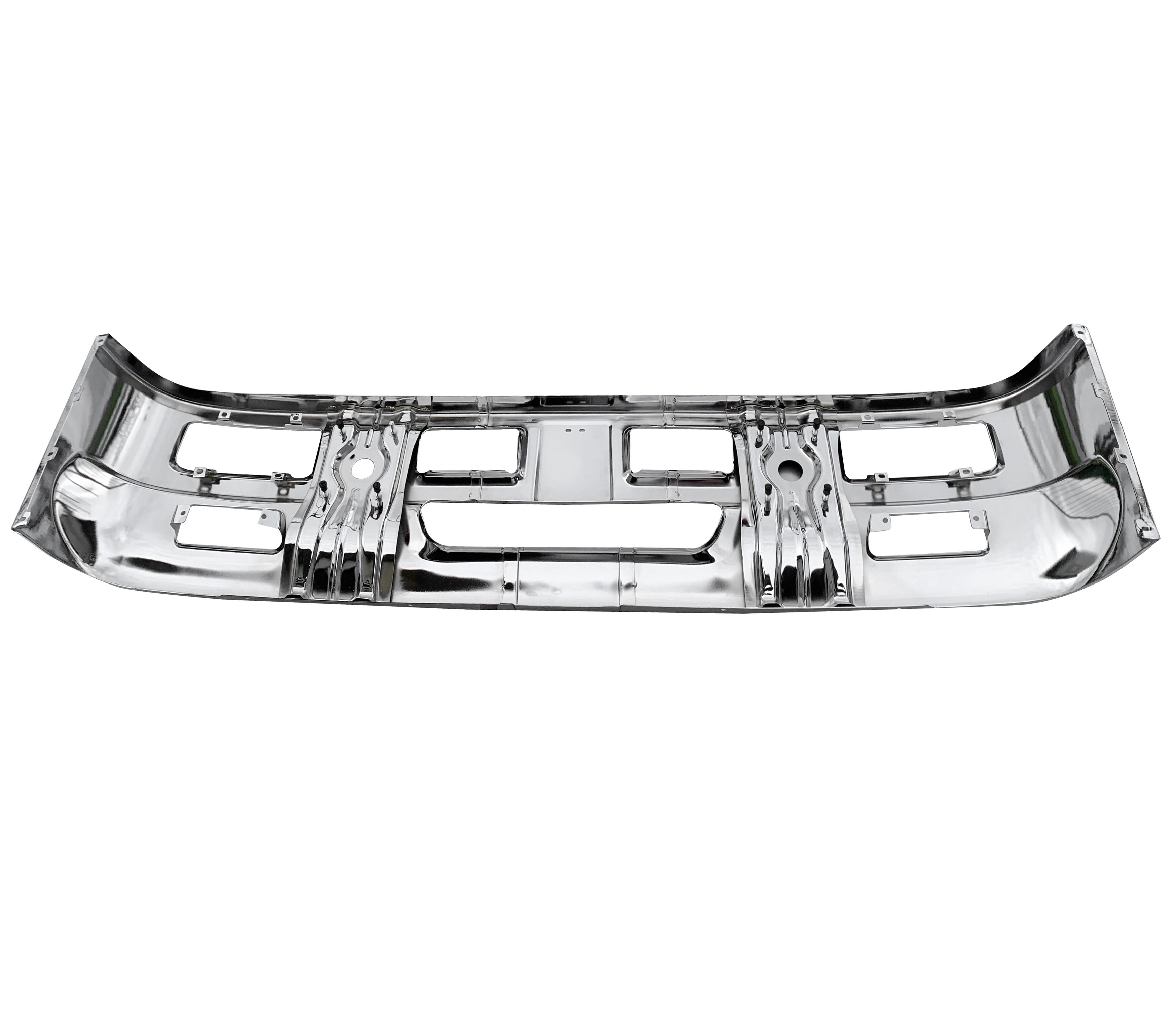 日産 アトラス F24 標準キャブ メッキ ハイブリッド フロント バンパー W1780mm H450mm フォグランプ 取り付けステー 付き 12-24Vホワイト白LEDフォグランプ付